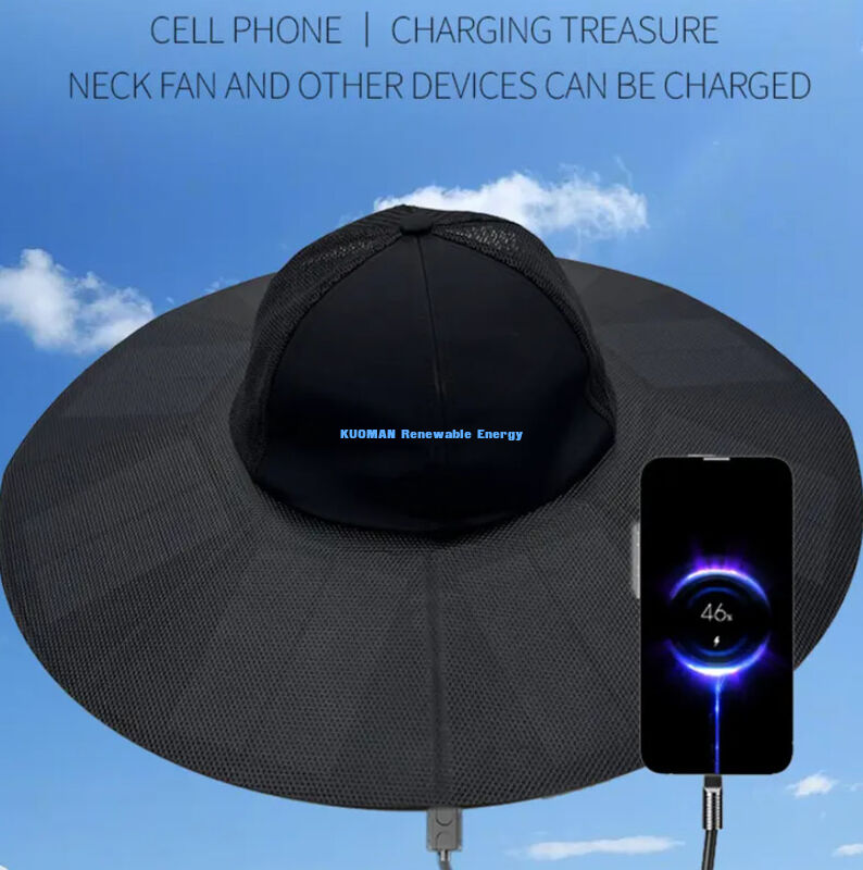 Payung Matahari dan penyimpanan daya Power Hat baru Lipat Portable Rechargeable Solar Hat